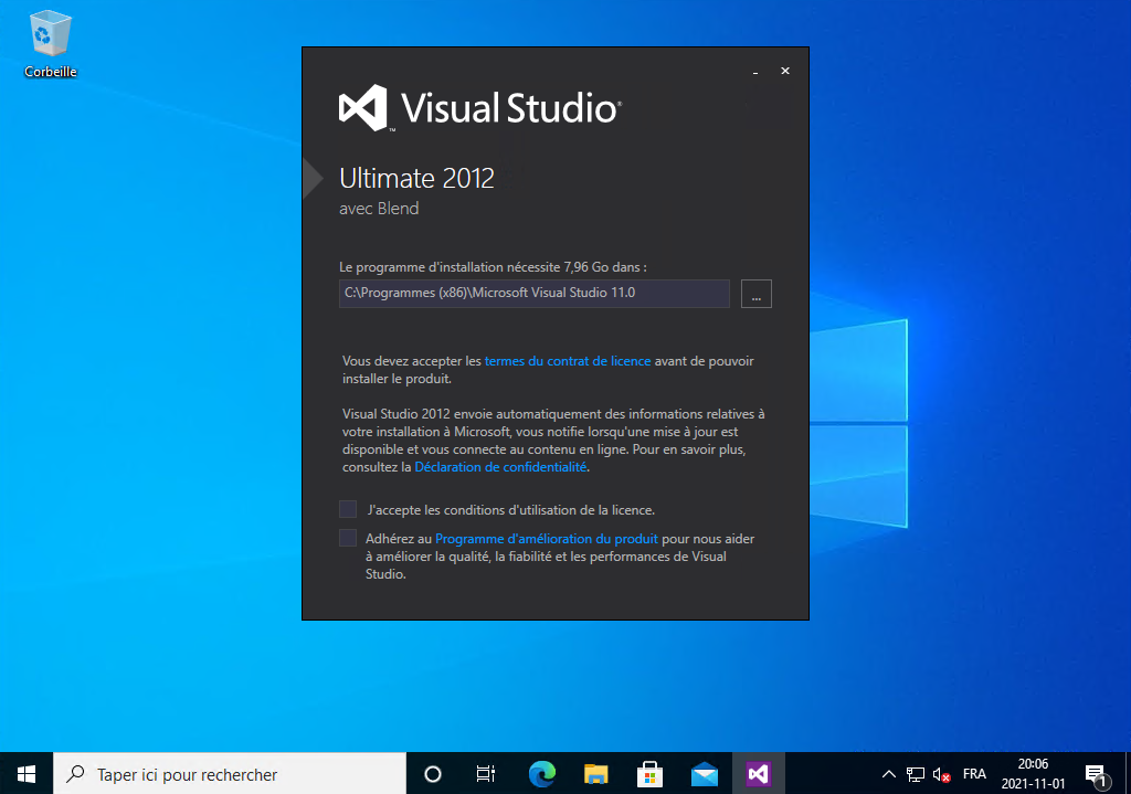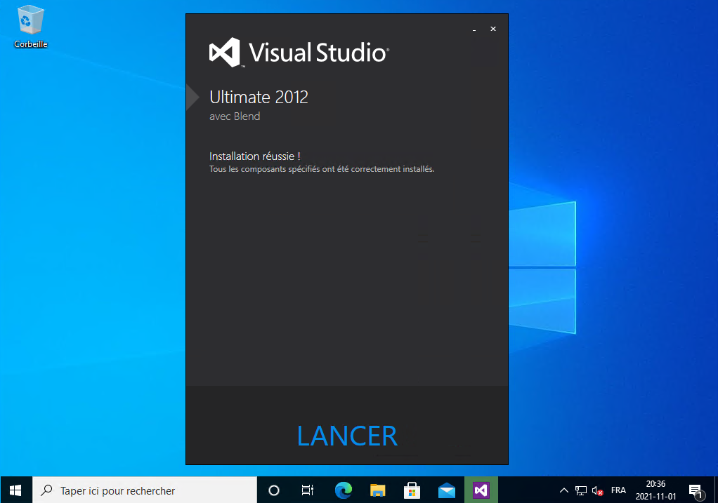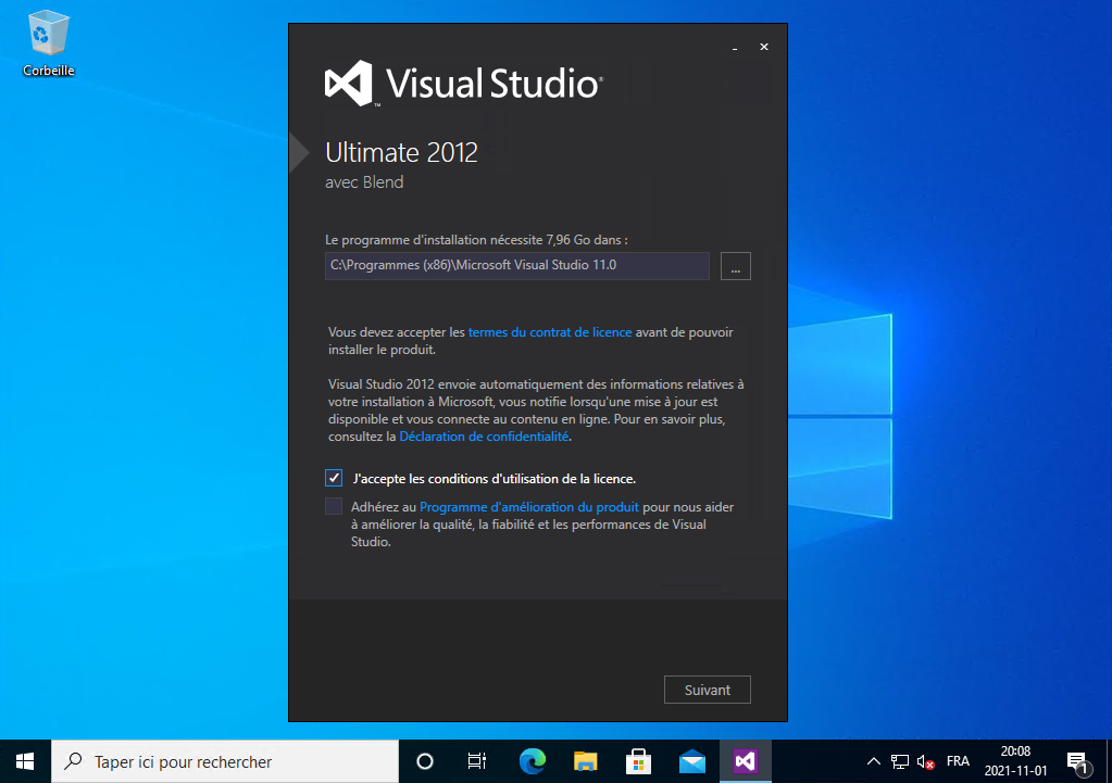 Il installe Visual Studio 2012, vous le laissez continuer :