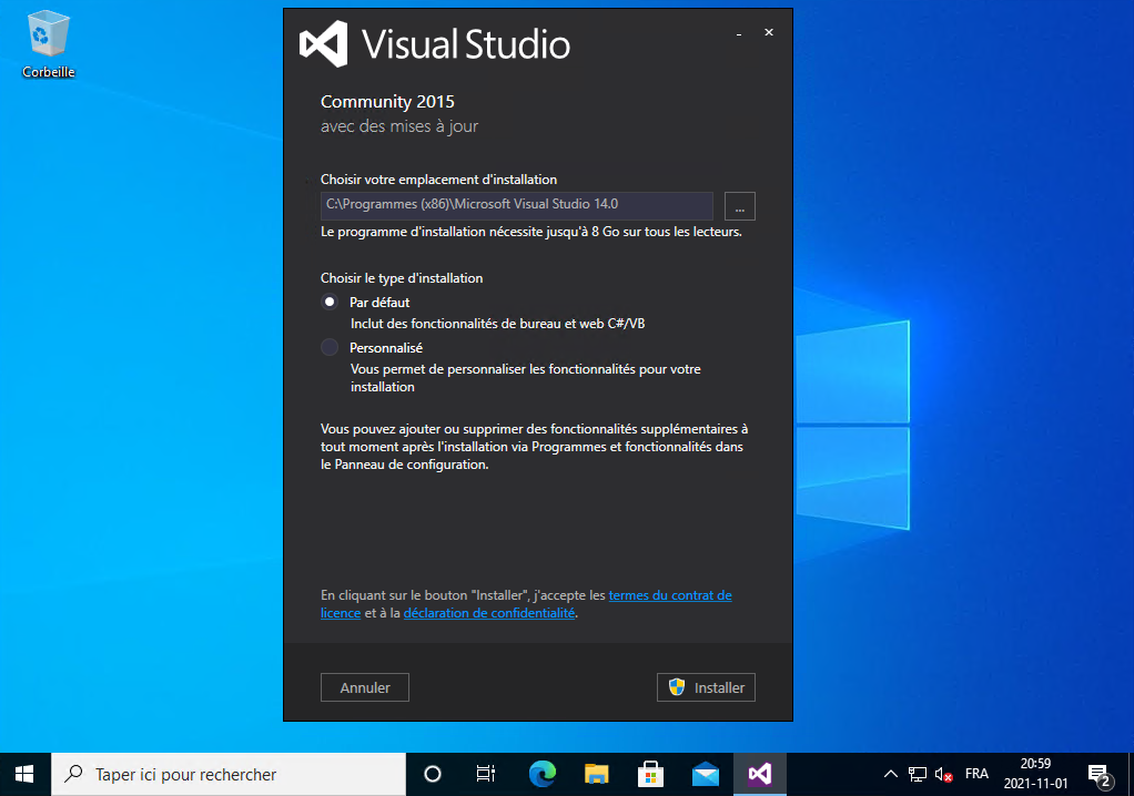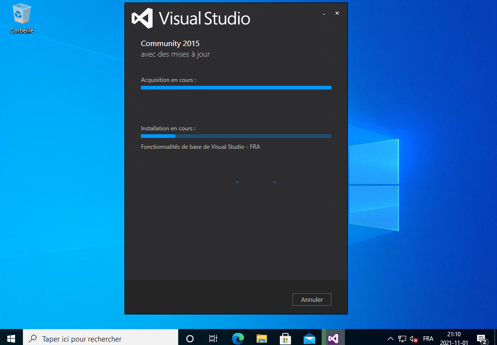 Il installe Visual Studio 2015, vous le laissez continuer :