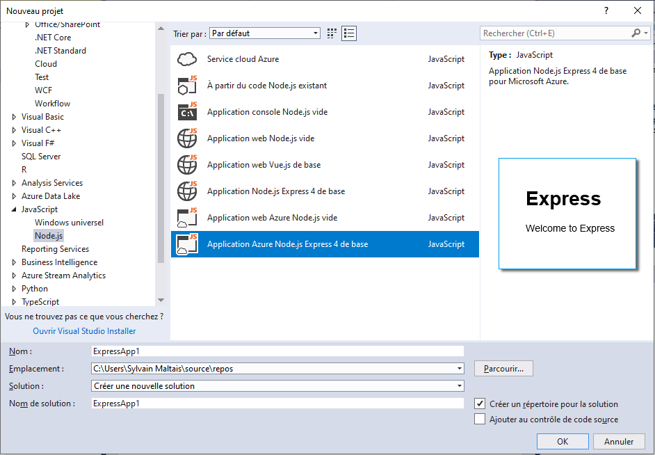 L'intégration entre Node.js et Visual Studio passe par un projet open source appelé Node.js Tools for Visual Studio (NTVS). Il est disponible depuis plusieurs années, mais avec l'introduction de charges de travail dans le processus d'installation et de mise à jour, vous pouvez désormais inclure NTVS dans Visual Studio sans installation séparée.