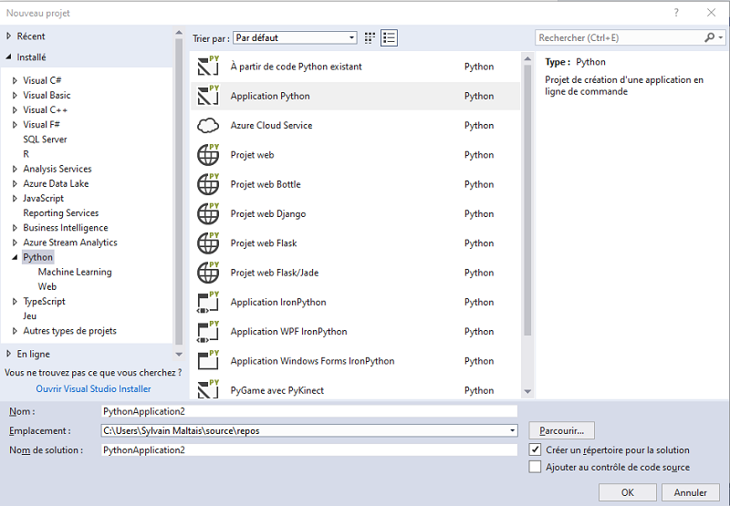 Les outils inclus font partie d'un projet open source appelé PTVS (Python Tools for Visual Studio). Il est disponible depuis plusieurs années pour les versions antérieures de Visual Studio, mais avec le nouveau processus d'installation et de mise à jour, il est désormais possible d'inclure PTVS dans Visual Studio sans installation séparée.