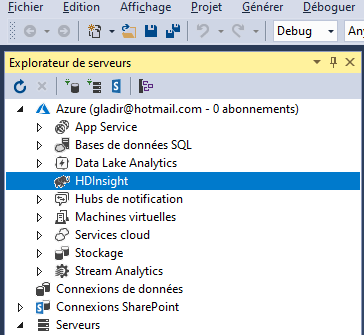 Des détails sur vos unités d'allocations HDInsight sont disponibles via l'Explorateur de serveurs (sur la version anglaise Server Explorer), comme illustré dans l'image suivante :