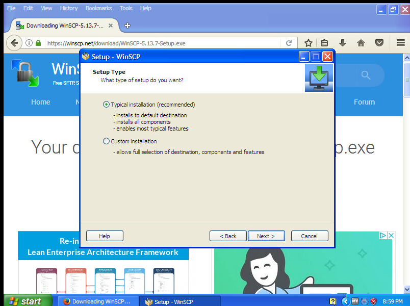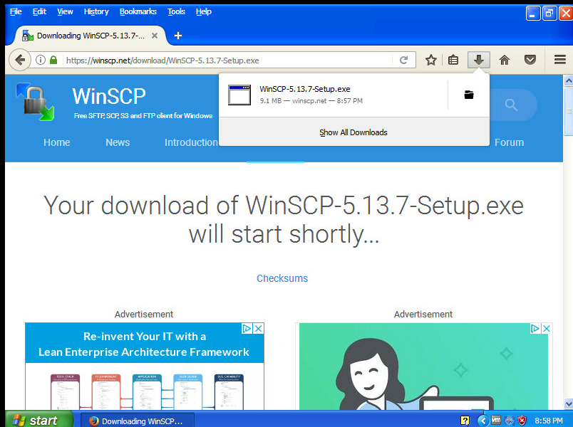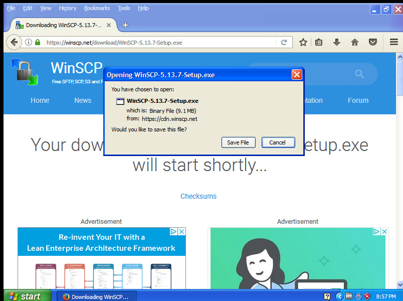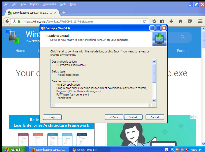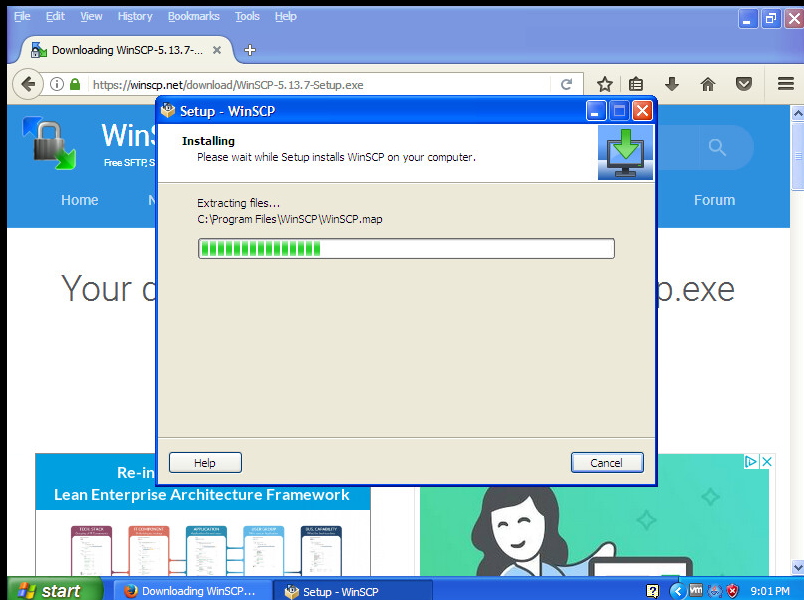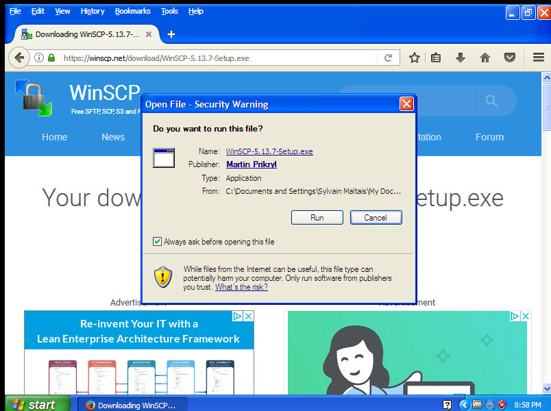 Il copie les fichiers du logiciel WinSCP sur le disque dur. Vous le laissez continuer.
