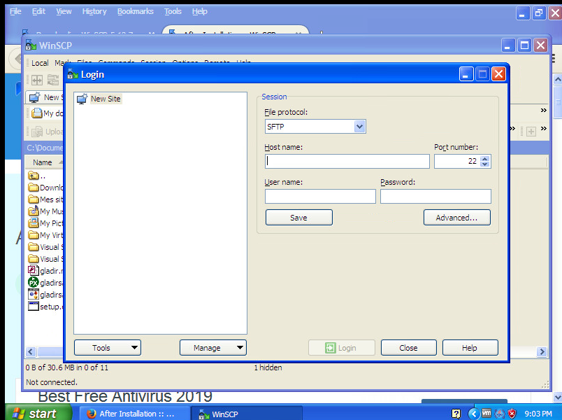 Il lance ensuite le programme WinSCP et fenêtre proposant d'entrée une connexion vous est proposé. Vous pouvez commencer à utiliser l'application normalement.