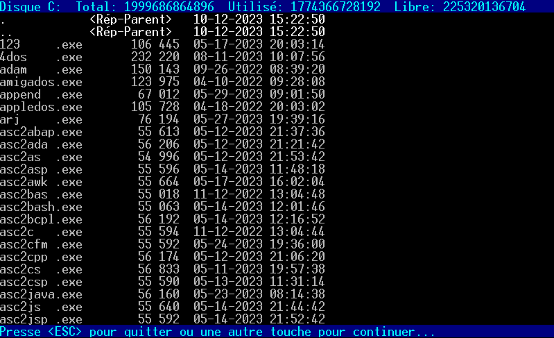 Ainsi, cette technique s'avère plus rapide que la commande DIR à cause qu'il n'y a pas de défilement de l'affichage.
