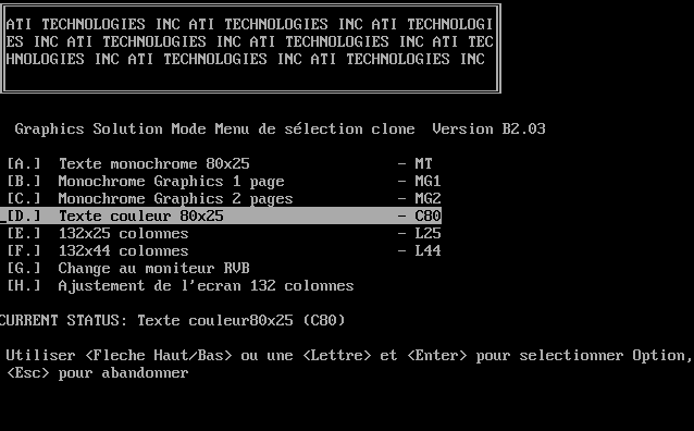 Ce paramètre permet d'indiquer le mode texte couleur 80x25. |