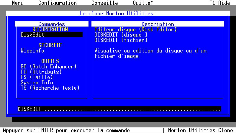 Cette commande permet de lancer le menu Norton Utilities.